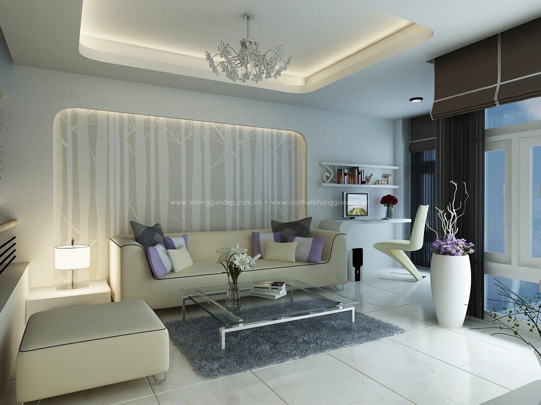 Phòng khách với gam màu sáng là một lựa chọn hợp lý làm toát lên sự sang trọng, hơn nữa không gian của căn phòng như được cơi nới rộng rãi hơn so với diện tích thực tế. Dễ dàng nhất trong việc trang trí phòng khách trông rộng rãi, thoáng mát hơn là tường được sơn phết hay ốp đá màu trắng. Cùng với nền gạch trắng, căn phòng sẽ trở nên vừa rộng, vừa trang nhã mà vẫn toát lên vẻ sang trọng của nó.