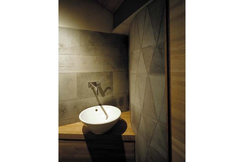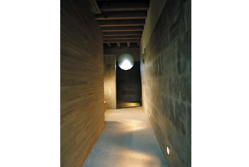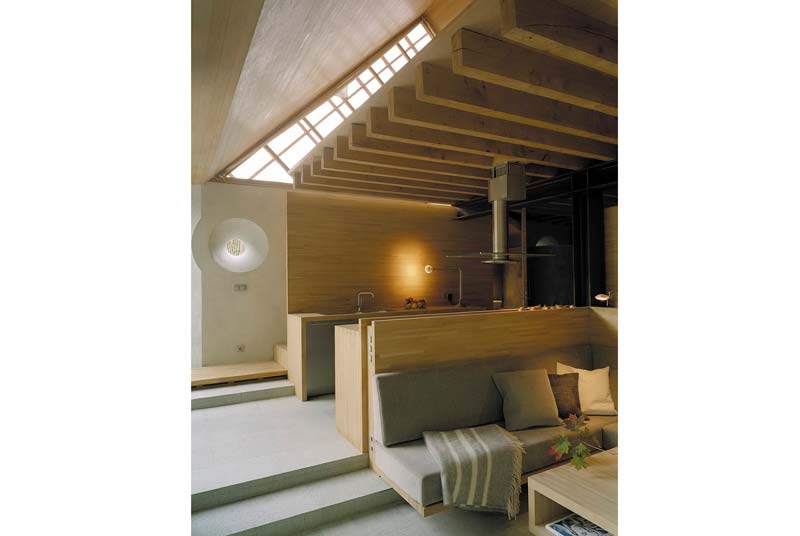 Đồ gỗ là bằng gỗ sồi. Những mặt đá là sa thạch xám. Tất cả đều làm bằng tay, cẩn thận đến từng chi tiết. Trong nhà lại có một sauna nhỏ, với một khu thay đồ và nhà tắm rất dễ chịu. Lối vào khu sauna được trang trí bằng đá.