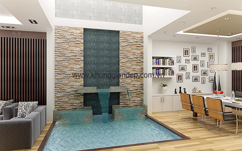 Tùy theo sở thích hay điều kiện không gian mà gia chủ chọn lựa việc bố trí tường nước, thác nước hay hồ nước trong sân nhà, đại sảnh. Tuy nhiên, tốt nhất nên bố trí tường nước, vì đây được coi như thác nước thu nhỏ có dòng chảy to, mạnh, mang nhiều sinh khí cho ngôi nhà.
