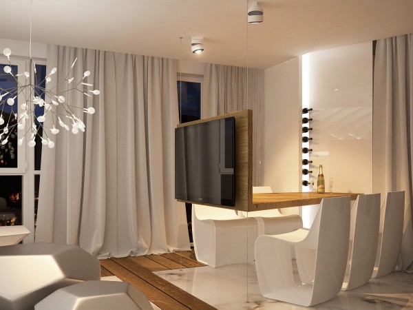 Màu trắng và thiết kế chiếc ghế rỗng là các yếu tố đặc biệt không thể thiếu của tương lai, hài hòa với không gian hạn chế mà vẫn tạo cảm giác thoải mái khi sử dụng.