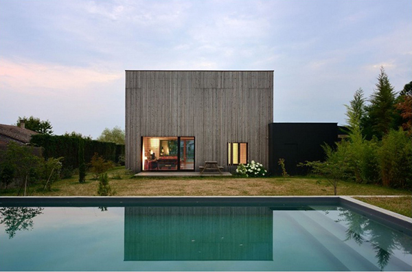 Mặt tiền nhà hướng về phía Nam và phần lớn được lắp kính nhằm tăng năng lượng mặt trời cho ngôi nhà. Lớp kính này có lớp bảo vệ để kiểm soát ánh nắng mặt trời theo từng mùa. Tầng trên được thiết kế gợi mở ra phía Đông và Nam, trong khi phía Bắc thì đóng kín còn phía Tây chỉ chừa những kẻ hở nhỏ cho khu vệ sinh và nhà tắm.