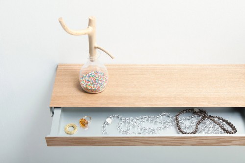 Chiếc kệ sách với hộc kéo bí mật này là sản phẩm mới nhất của văn phòng thiết kế Torafu Architects. Thoạt nhìn, chúng ta sẽ nhầm tưởng sản phẩm này được làm từ gỗ, nhưng không, vật liệu chính của nó là nhôm. Vân gỗ trên bề mặt chỉ là những bản in màu khéo léo. Chính vì vậy mà nó đòi hỏi một quá trình sản xuất có độ tinh tế cao.