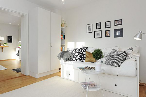 Thêm vào đó, một điều không kém quan trọng đối với căn hộ nhỏ này đó là không gian lưu trữ. Mọi ngóc ngách dù là nhỏ nhất cũng cần được tận dụng một cách triệt để và khéo léo để bố trí hệ thống tủ, kệ phục vụ nhu cầu lưu trữ đồ dùng trong nhà.