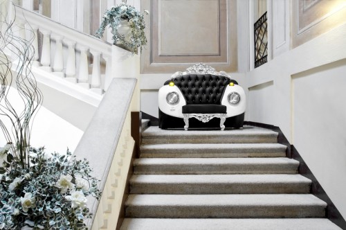Phong cách Car Art và Baroque được thể hiện rõ nét trên mẫu ghế Glamour Beetle, đây là sự kết hợp đầy thú vị từ những đường nét hoa văn uốn lượn mềm mại của kiến trúc cổ điển cùng mô hình hiện đại mang hơi hướng cơ khí. Hai khái niệm tách biệt tưởng chừng không hề liên quan đến nhau, lại được hai nhà thiết kế lồng ghép một cách tinh tế để đem lại những điểm nhấn khác lạ cho không gian sống.