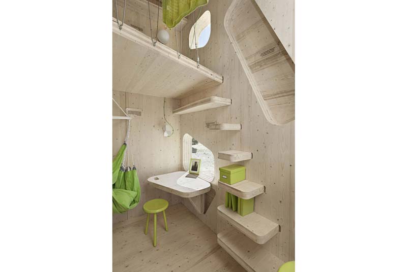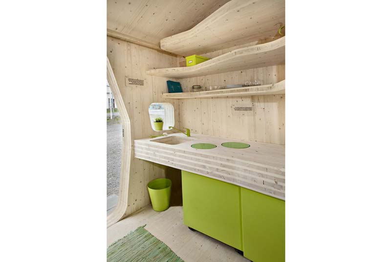 Mọi thứ trong nhà là vật liệu tự nhiên, thân thiện với môi trường theo đúng nghĩa, nhất là ở khía cạnh không lấn át cảnh quan. Màu sắc tươi sáng, nhìn như những cái nấm con hay nhà của các thần lùn!