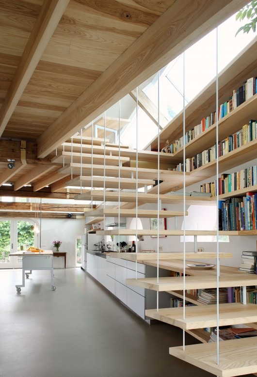 Các kiến trúc sư đã đề xuất đảo ngược cách bố trí của ngôi nhà, di chuyển các văn phòng và không gian lưu trữ đến phần được mở rộng từ người chủ cũ để có không gian riêng tư cho ngôi nhà. Một khe lớn đã được cắt đến mái nhà để ánh sáng chiếu vào. Cuối cùng, những đồ nội thất được đưa vào cùng lúc để tạo nên bếp, nhà kho, cầu thang và thư viện.