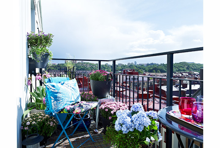 Những cánh cửa lớn từ phòng khách mở vào một ban công thực là tuyệt vời, tuy bé nhưng nhìn ra khung cảnh rất đẹp, với những mái nhà đỏ lô nhô bên dưới, những rặng núi xa.