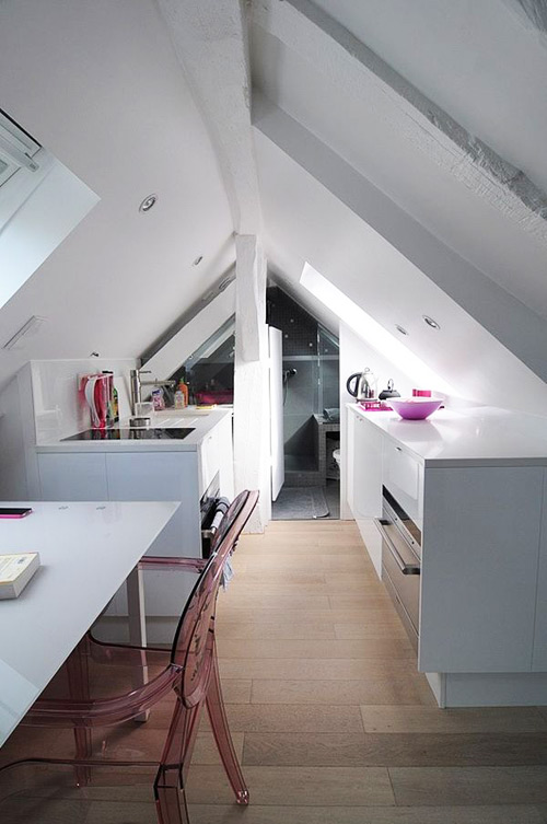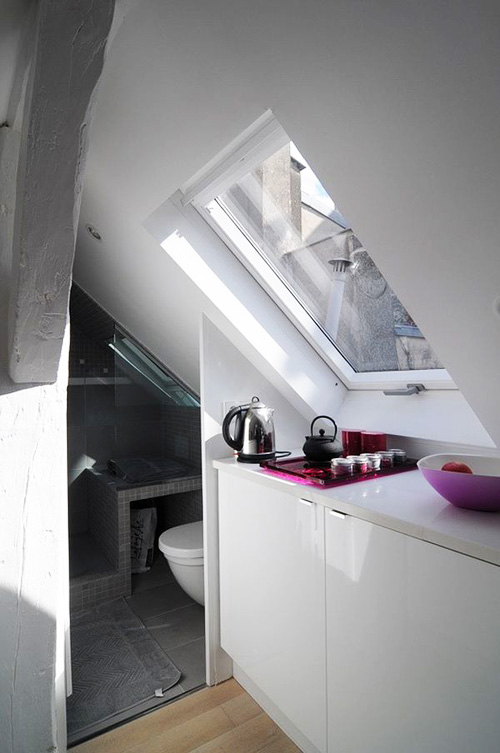 Khi bạn nghĩ về nó, đây có lẽ là giải pháp tốt nhất nếu bạn muốn có một gian bếp, một phòng tắm, khu vực sinh hoạt và làm việc tất cả trong căn gác mái này. Diện tích nhỏ đã được tận dụng tối đa.
