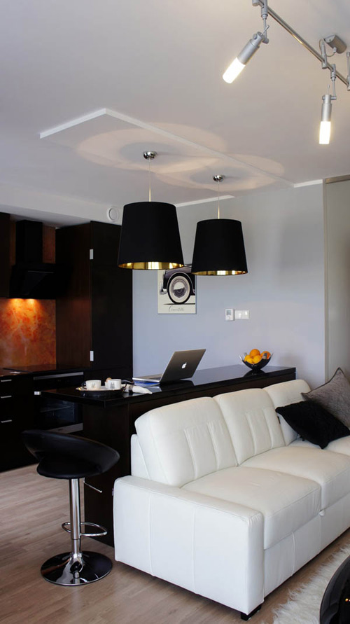Đây là một căn hộ có diện tích vỏn vẹn hơn 30m2, một ví dụ hoàn hảo cho phong cách thiết kế nội thất hiện đại, thanh lịch và cởi mở. Tuy nhỏ nhưng những ai còn độc thân hoặc cặp vợ chồng mới cưới sẽ thích cảm giác ấm cúng mà nó mang lại.