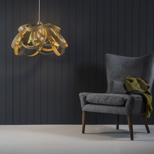Các thiết kế của Tom Raffield chịu ảnh hưởng từ môi trường trưởng thành, sống và làm việc ở Exmoor hoang dã và miền quê Cornwall. Đèn Bloom là một trong những đứa con tinh thần của anh thể hiện rõ nét nguồn cảm hứng đến từ thiên nhiên đó. Những cánh hoa vòng cung mềm mại xếp thành một hình dạng đối xứng bao quanh bóng đèn, màu sắc thanh lịch, tươi sáng và ấm áp được chế tác từ gỗ cây tần bì, sồi và gỗ óc chó hoặc kết hợp giữa gỗ sồi và gỗ óc chó.