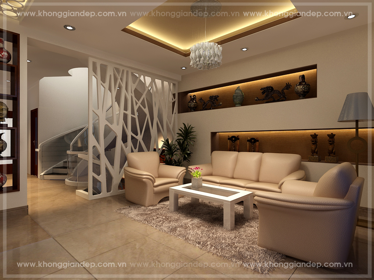 Dưới đây là một số mẫu phòng khách lộng lẫy với đèn chùm do các kiến trúc sư Không Gian Đẹp thiết kế:
