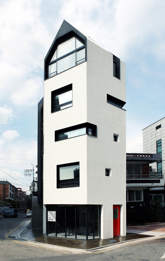 Cửa ra vào mỗi căn hộ được sơn màu đỏ, còn cửa sổ lớn có tầm nhìn xuống các con đường nhỏ nhắn ở Seoul. Các kiến trúc sư đã tận dụng tối đa vị trí của mảnh đất khi thiết kế các cửa sổ ở một mặt có tầm nhìn, giúp kết nối mỗi căn hộ với không gian mở bên ngoài vì ba mặt còn lại của tòa nhà đều đối mặt với đường phố ồn ào.