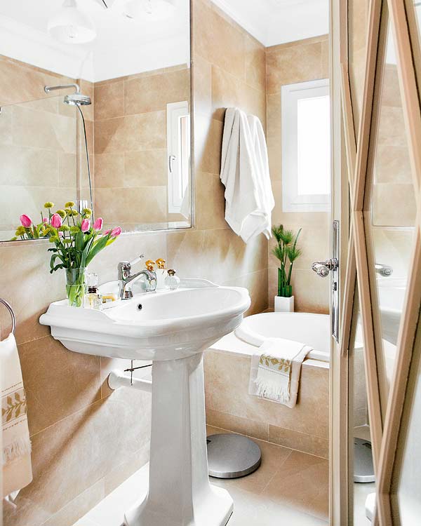 Cách bài trí gương vô cùng thông minh trên cánh cửa và bồn rửa
