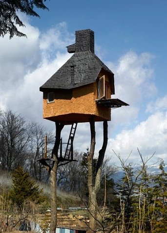 Ngôi nhà dùng để uống trà này được thiết kế bởi kiến trúc sư Nhật Bản Terunobo Fujimori. Nó cao 6m so với mặt đát. Đây thực sự là một nơi yên tĩnh để uống trà.