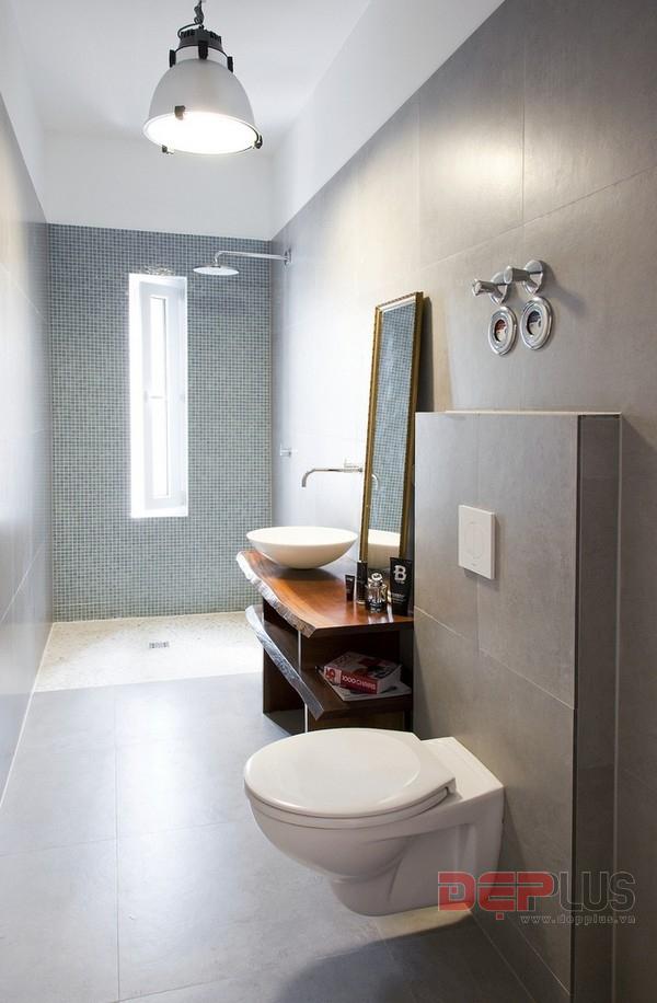 Phòng tắm là nơi duy nhất trong nhà sử dụng gam màu xám