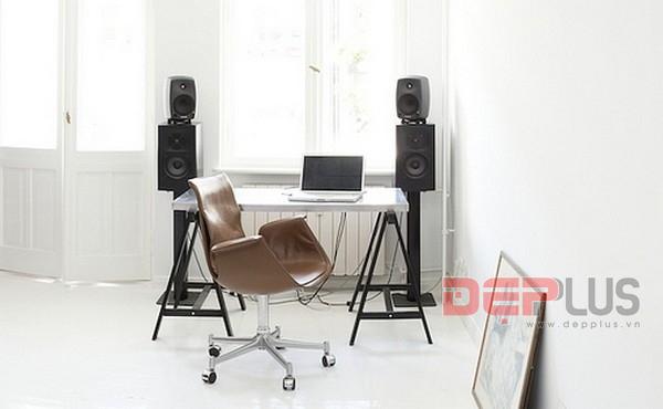 Phòng ngủ kết hợp với khu vực làm việc, do nhà nhỏ nên chủ nhân sử dụng móc treo quần áo và hộp đựng giày mở rộng không gian phòng.