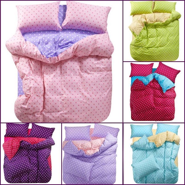 Vỏ chăn ga gối họa tiết chấm bi cũng rất mốt và vui mắt.