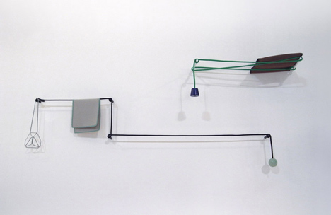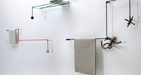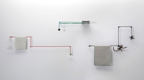 Đây là bộ dây móc khăn được đính lên tường bằng cách quấn quanh những chiếc đinh của hãng Hioomi Tahara.