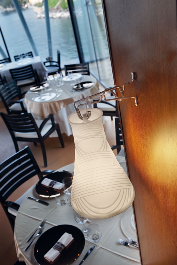 Bạn đang băn khoăn tìm kiếm cho mình một chiếc đèn có thể đáp ứng được yêu cầu trong nhiều không gian khác nhau? “Bell” – loại đèn của nhà thiết kế Italo Belussi có thể sẽ khiến bạn hài lòng. Nếu hai mẫu đèn trên được tạo ra từ vật liệu chính là gỗ thì chiếc đèn treo này lại được hoàn thành bởi hợp chất silicon với phương pháp đúc đặc biệt.