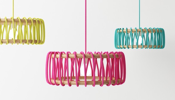 Để sáng tạo một chiếc đèn treo thu hút người nhìn, nhà thiết kế người Tây Ban Nha, Silvia Ceñal Idarreta đã nghiên cứu và tìm tòi để kết hợp các vật liệu gỗ, bóng đèn và sợi vải một cách hài hòa. Nếu như gỗ mang đến sự vững chắc, mạnh mẽ thì những sợi dây nối mảnh mai lại tạo nên sự mềm mại và quyến rũ nhất định của chiếc đèn. Thêm vào đó, các màu sắc hồng, xanh, vàng trẻ trung cũng khiến cho người ta liên tưởng đến những hương vị khác nhau của chiếc bánh Macaron ngọt ngào…