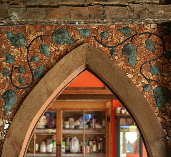 Những họa tiết khảm tường đều được làm thủ công từ những nguyên liệu tái chế.