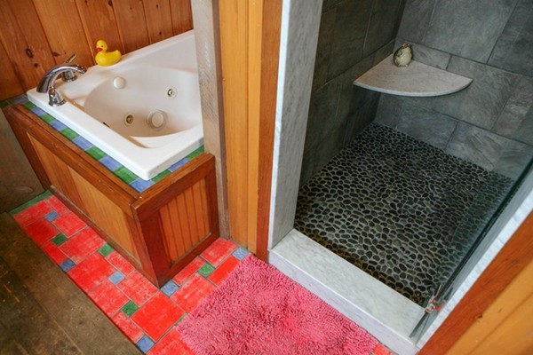 Sàn phòng tắm lát đá cuội mang từ biển về.