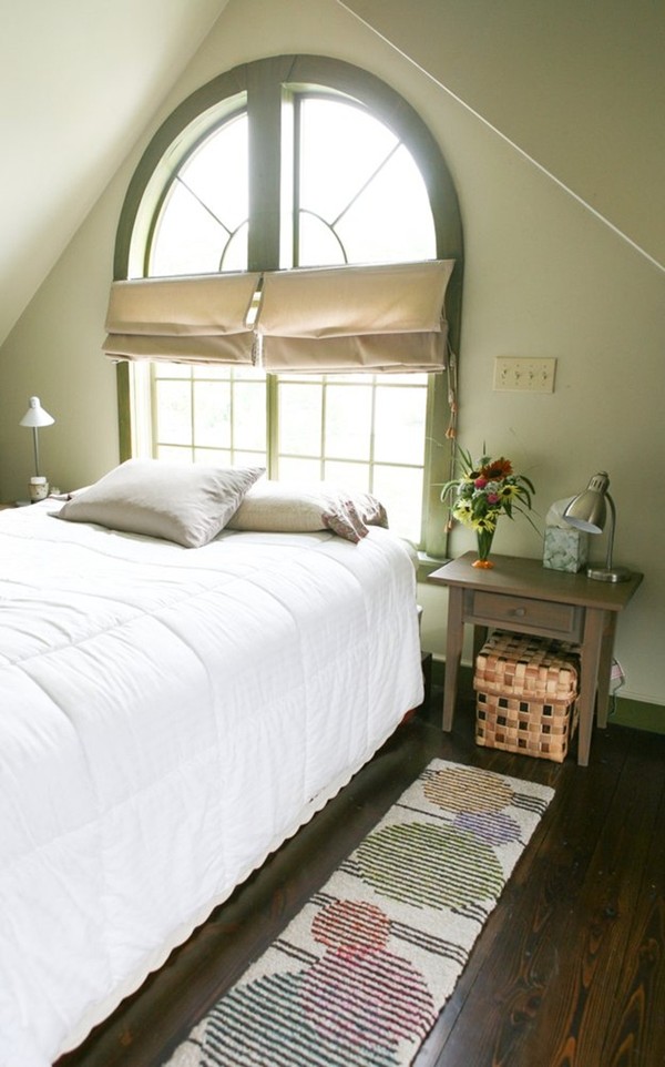 Phòng ngủ lớn mang màu sắc trắng với khung cửa sổ lớn. Còn phòng ngủ thứ 2 đặt trên phòng áp mái với tường gỗ và những họa tiết trang trí màu sắc và ga họa tiết thổ cẩm.