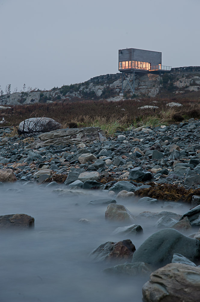 Với cái tên như gợi ý, Cliff House (tạm dịch là Nhà Cheo Leo), dự án hoàn thành trong năm nay bởi hãng MacKay-Lyons Sweetapple Architects là ngôi nhà trải dài trên các cạnh của một vách đá ven bờ biển Đại Tây Dương lộng gió của vùng Nova Scotia, Canada. Như một nơi yên tĩnh dành cho việc tu tập bên bờ biển hiền hòa, việc xây dựng ngôi nhà tưởng chừng như không thể khi nhìn từ xa, ngôi nhà như hình ảnh ảo giác nổi trên đại dương. Là chốn nghỉ ngơi cuối tuần cho một gia đình đi lại như con thoi giữa California và Nova Scotia, ngôi nhà gồm hai tầng được xây từ gỗ và khung thép đơn giản, trở thành nơi ẩn náu tuyệt vời để thoát khỏi cuộc sống bận rộn.