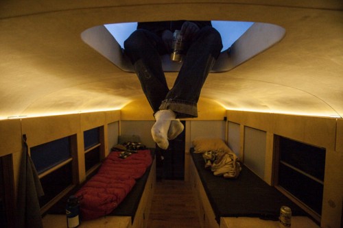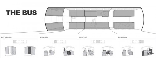 Chàng sinh viên trường đại học Minnesota đã biến chiếc xe dài thành một ngôi nhà di động, và lái nó đi suốt một hành trình dài 5000 dặm xuyên miền tây bắc nước Mỹ. Đồ án khởi đầu với một quyết định bốc đồng, vào thời điểm Butitta bắt tay vào thực hiện đồ án tốt nghiệp thạc sĩ, và đang nung nấu thôi thúc mở cửa hiệu riêng. Chiếc xe trị giá 3000 đô la đã được trang bị giường ngủ, bàn ghế, tủ chứa rộng rãi, bồn rửa và cả phòng vệ sinh. Không gian nội thất trong xe khoảng 225 foot vuông (xấp xỉ 21 mét vuông), đủ cho 6 người cùng ở. Mô hình nhà ở lưu động này là một phản hồi và đóng góp cho “chiến dịch nhà ở bé gọn”, nhằm cổ động lối sống tiết giảm, bền vững, dù thường bị cản trở bởi những quy chuẩn hà khắc của ngành xây dựng. Sau khi hay tin ông mình sở hữu một mảnh đất rộng 80 mẫu ở vùng Wisconsin Dells, Hank quyết định xây một ngôi nhà nhỏ trên mảnh đất này. Ý tưởng xe buýt-biến thành-nhà ở là một cơ hội và giải pháp mang tính cầu may.