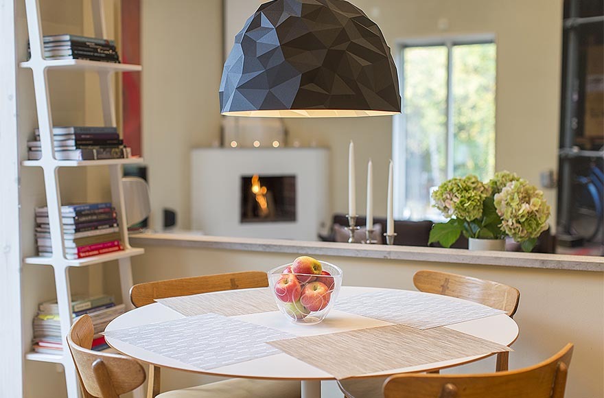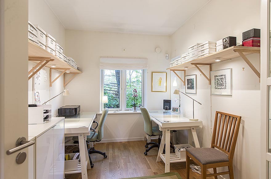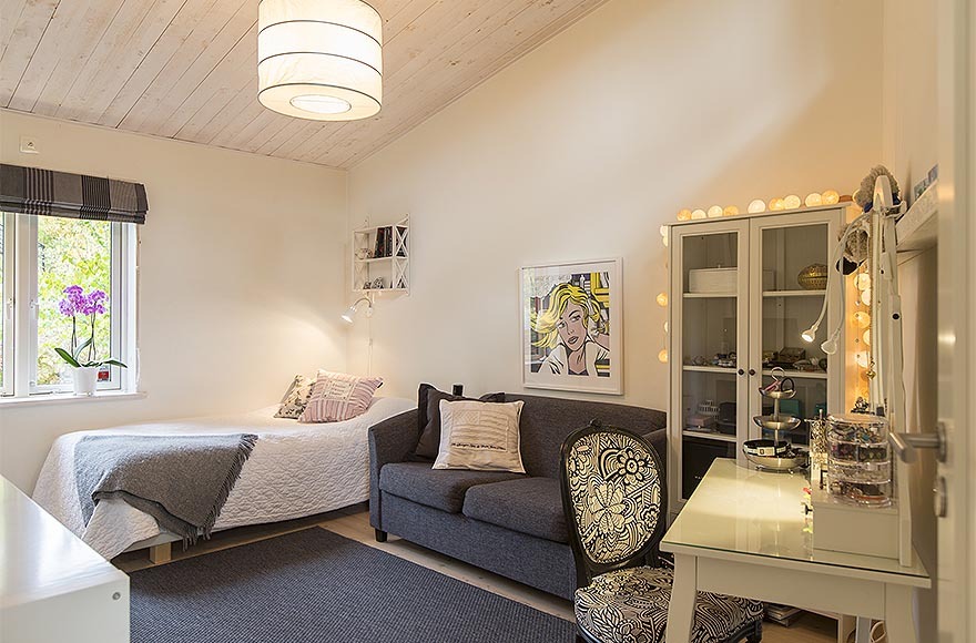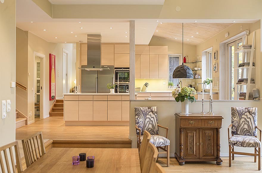 Ngoài ra, căn biệt thự có thiết kế nội thất nhỏ gọn và sang trọng mang những màu mật ong cấp độ khác nhau tạo cảm giác ấm áp. Từng chi tiết nhỏ đã được sắp xếp cẩn thận để tạo ra không gian thông thoáng điển hình cho kiểu nhà Thụy Điển và cũng để làm nổi bật đồ nội thất. Kết quả ấn tượng là một ngôi nhà tinh tế và ấm cúng.