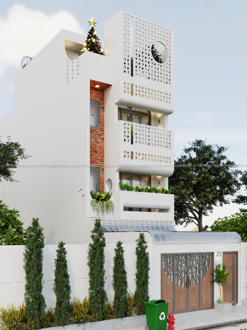 Nhà phố Hiện Đại với Không Gian vườn Thiền