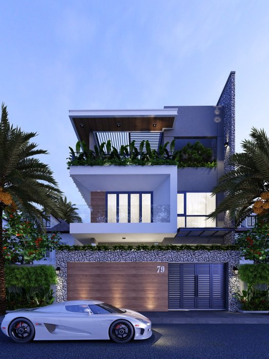 Nhà phố Hiện Đại với Không Gian vườn Thiền