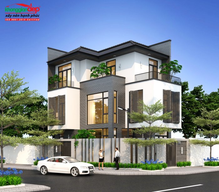 ♦ Nổi bật trên nền trắng sáng, điểm nhấn màu đen sang trọng, tất cả toát lên vẻ đẹp đầy cuốn hút được tạo dựng bởi sự sáng tạo độc đáo của nghệ thuật ốp gạch trên tường không đơn điệu mà như một bức tranh. Điểm đặc biệt của ngôi nhà còn ở chỗ tận dụng tối đa ánh sáng tự nhiên nhờ lợi thế 2 mặt tiền, giúp tiết kiệm điện năng và làm cho không gian trong ngôi nhà như hòa mình với thiên nhiên.
