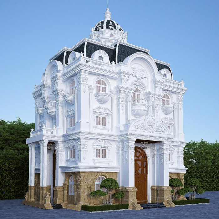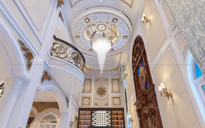 ♦ Nguy nga – Sang trọng – Lộng lẫy là những từ chính xác dùng để miêu tả căn biệt thự tại Long An. Được thiết kế lấy cảm hứng từ những toà lâu đài cổ kính, pha một chút phong cách cổ điển Pháp. Với yêu cầu 1 trệt, 3 lầu, 6 phòng ngủ, mỗi phòng ngủ là một không gian sống riêng với phòng khách và phòng ngủ. Qua sự sáng tạo và biến hoá của các KTS Không Gian Đẹp, công trình này đã được “phù phép” như thế nào???? Cùng KGĐ chiêm ngưỡng nhé!