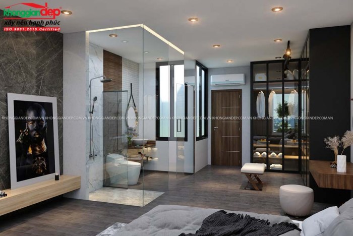 – Lầu 2, Lầu 3 (Sân thượng): Nơi sinh hoạt của gia đình. Nội thất hiện đại, đa dụng, đảm bảo đầy đủ tiện nghi cho sinh hoạt của các thành viên trong gia đình. Bên cạnh đó, các KTS KHÔNG GIAN ĐẸP đã khéo léo kết hợp những gam màu hài hoà với nhau, tạo ra những không gian đặc sắc và thú vị, giảm bớt sự nhàm chán & có phần đơn giản mà kiến trúc hiện đại mang lại.