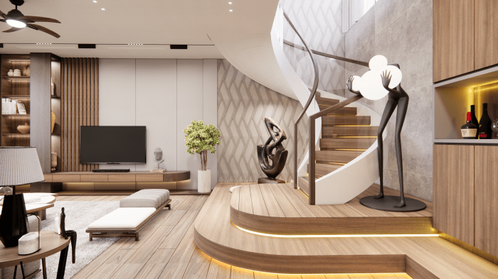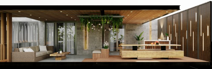 Không Gian Lầu 2, Lầu được bố trí cho gia đình như một PenHouse thu nhỏ với sự nhấn mạnh khu vực Vườn Thiền giành riêng cho gia chủ