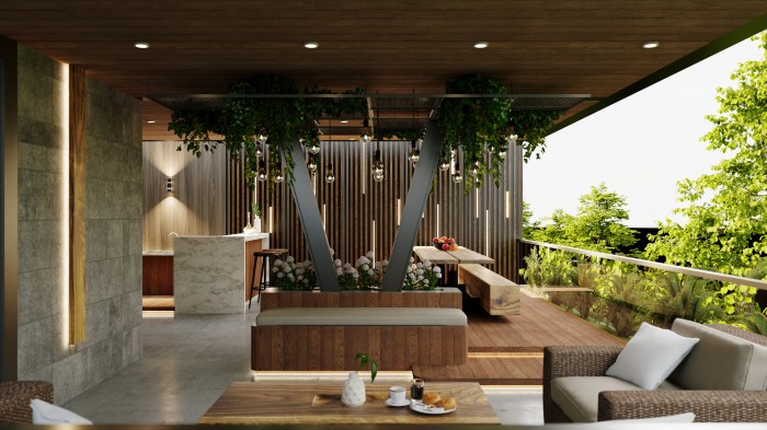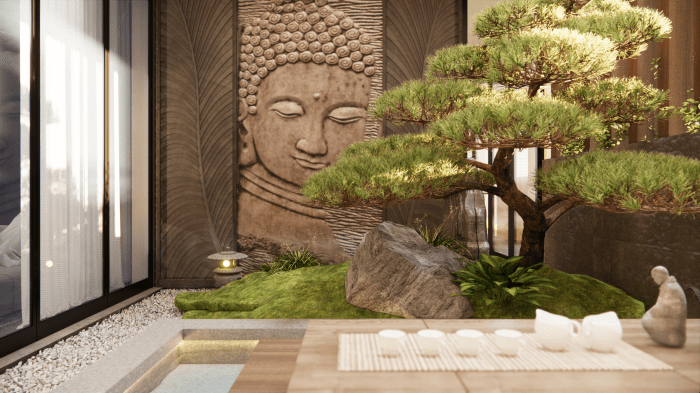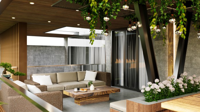 Không Gian Sân thượng bố trí khu vực Vườn Trà Đạo và khu bày tiệc Ngoài trời